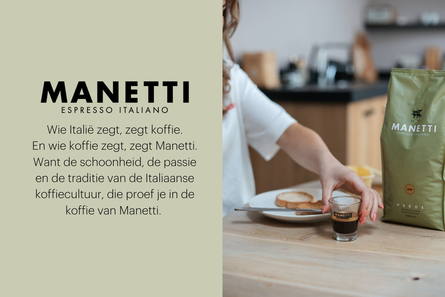 Top kwaliteit bonen, een gepassioneerd en gedreven team, ervaren melangeurs en een eigen branderij. Stuk voor stuk ingrediรซnten voor deze unieke Italiaanse beleving. Opgericht in 2007 en inmiddels verkrijgbaar bij meer dan 500 horecazaken in Nederland. Zo worden de bonen van Manetti onder meer gebruikt in alle horecazaken waar sterrenkok Ron Blaauw bij betrokken is.