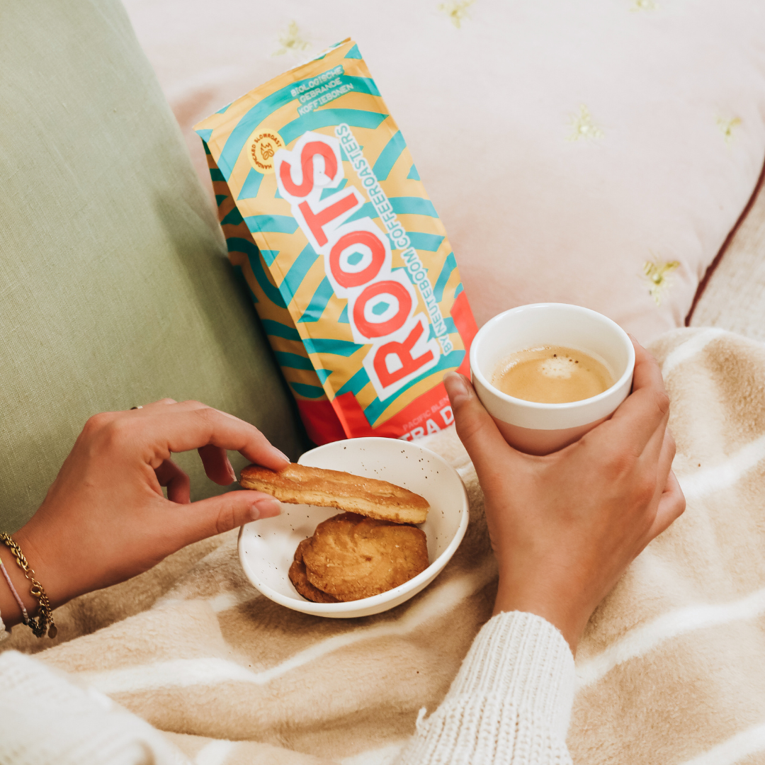 De koffie van Roots laat je glimlachen. De Roots bonen zijn allemaal verpakt per 500 gram en biologisch gecertificeerd. De Extra Dark Roast heeft een ultieme smaak explosie!